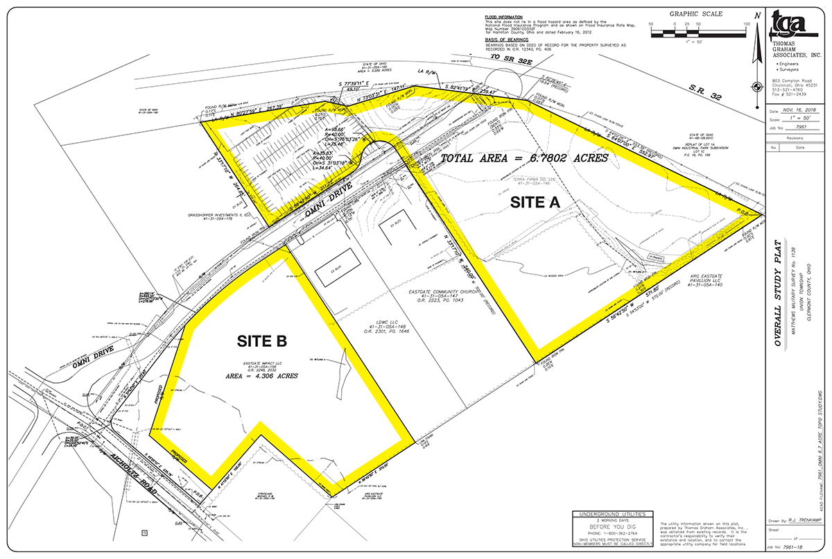 3232 Eastgate Center is property that Terra Firma has acquired for future development. While the prime location of the property lends itself to a variety of possible uses, the current plan is to develop a project for potential users that want to take advantage of the prominent "gateway" visibility that the site has to both I-275 and SR 32, which is one of the highest volume interchanges in southwestern Ohio, and the immediate adjacency of the new facilities to be constructed by Children's Hospital and Mercy Hospital.