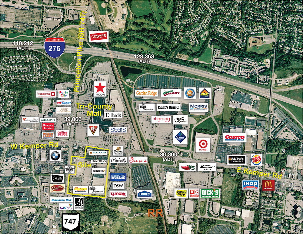 Cassinelli Square is a 305,000 sf retail center on 29.5 acres. Tenants include Home Emporium, Big Lots, and Haverty's Furniture. The center is strategically positioned across the street from the 1.3 million sf Tri-County Mall, which historically has been one of the Cincinnati metropolitan areas premier retail destinations. Tri-County serves a vibrant trade area with a population of 143,192 residents and an average household income of $77,390 within a five mile radius. The Tri-County market contains over 2 million sf of office space.